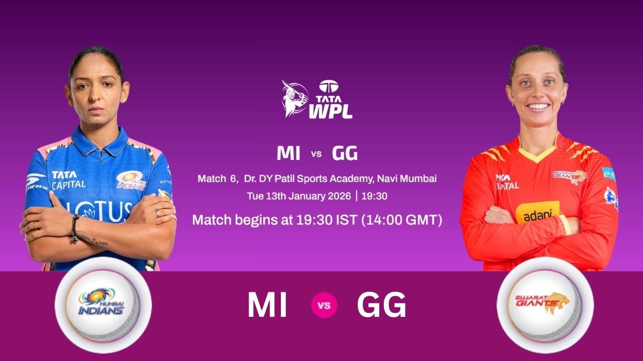Women’s Premier League 2026 का उत्साह और तेज़ हो रहा है, और मैच 6 में प्रशंसकों को एक ब्लॉकबस्टर क्लैश देखने को मिलेगा। मुंबई इंडियंस महिला और गुजरात जायंट्स महिला डीवाई पाटिल स्पोर्ट्स अकादमी, नवी मुंबई में आमने-सामने होंगी – जहां रन, बड़े हिट और सामरिक लड़ाई का पूरा मौका है।